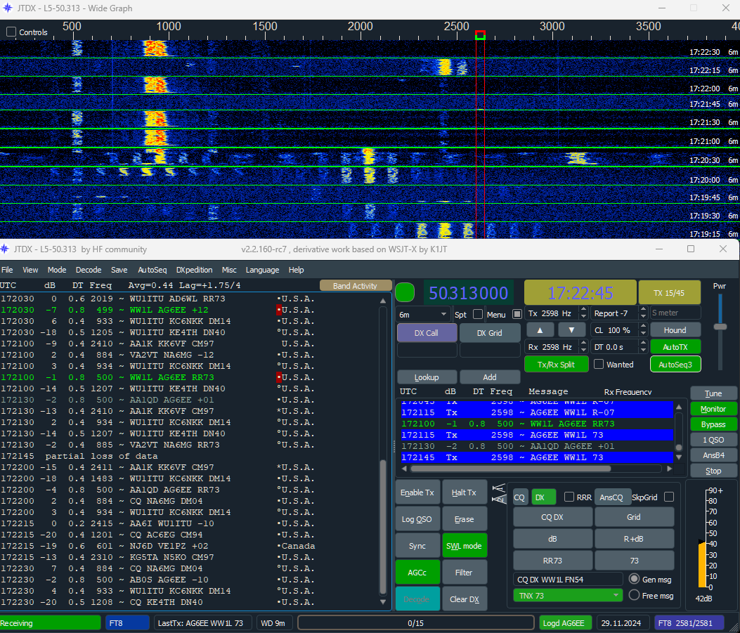 6m/8m: Nov 29 - DXing 9L5A Worked #189, KL7J